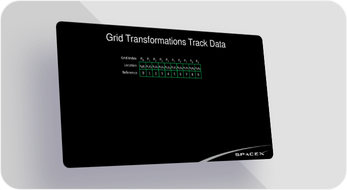 Grid Transformations Track Data Grid Index P0 P1 P2 P3 P4 P5 P6 P7 P8 P9 Location x y x y x y x y x y x y x y x y x y x y 0 0 1 1 2 2 3 3 4 4 5 5 6 6 7 7 8 8 9 9 Reference 0 1 2 3 4 5 6 7 8 9