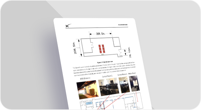 FALCON USER’S GUIDE Figure 6-7: Pad customer room The SpaceX Launch Control is located approximately 11 miles north of the pad. These facilities are equipped with fiber- optic connections to the launch site and a connection into the launch site’s main data system, allowing easy data transfers between the control facility, the pad and the range, along with required external users and agencies. A customer room is provided within the facility and can accommodate up to 12 customer technical personnel. Figure 6-8: Customer control rooms at SpaceX Launch Control © Space Exploration Technologies Corp. All rights reserved. 46