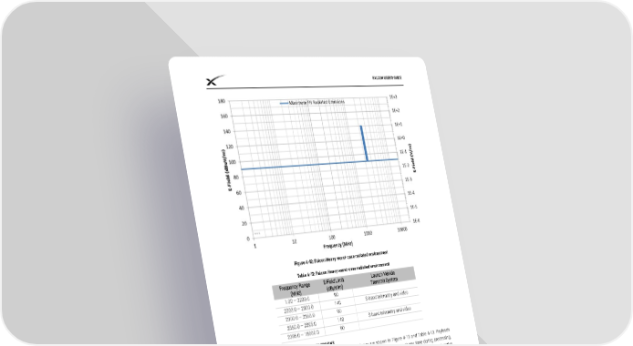 FALCON USER’S GUIDE Figure 4-12: Falcon Heavy worst-case radiated environment Table 4-12: Falcon Heavy worst-case radiated environment Frequency Range E Field Limit Launch Vehicle (MHz) (dBμV/m) Transmit System 1.00 – 2200.0 90 2200.0 – 2300.0 140 S-band telemetry and video 2300.0 – 2360.0 90 2360.0 – 2395.0 140 S-band telemetry and video 2395.0 – 18000.0 90 4.3.6.3 MAXIMUM SPACECRAFT EMISSIONS Maximum spacecraft emissions for Falcon 9 and Falcon Heavy are shown in Figure 4-13 and Table 4-13. Payloads should not emit radiation in excess of the maximum allowable spacecraft emissions at any time during processing, integration or flight, as measured at the top of the payload attach fitting. Standard Falcon services do not permit active payload radiation during the countdown or flight prior to separation from the second stage. This limit envelopes expected emissions as calculated at the plane between the payload attach fitting (PAF) and mission-specific payload adapter and includes EMI safety margin. Notch requests will be assessed for compatibility on a mission-specific basis; notches for spacecraft transmitters can typically be accommodated to a level that is 6dB lower than SpaceX Avionics qualification limits. Please consult with SpaceX for your mission needs. © Space Exploration Technologies Corp. All rights reserved. 30
